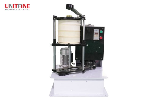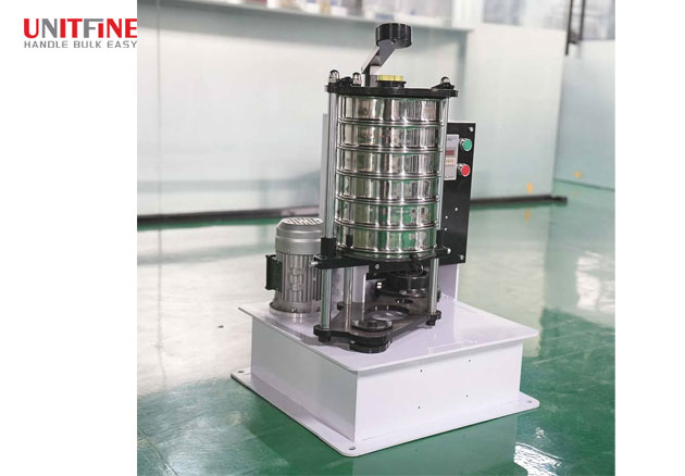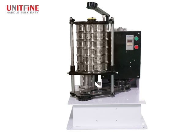 The Unitfine Top-Tap Sieve Shaker is a heavy-duty particle analysis machine designed to meet strict ASTM and ISO standards. Often referred to as a "Ro-Tap style" shaker, it utilizes a unique dual-motion mechanism: horizontal circular rotation combined with a vertical overhead tapping hammer. This action effectively simulates manual hand sieving, preventing screen blinding and ensuring accurate stratification for difficult materials like abrasives, mining aggregates, and heavy powders.