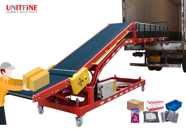 Home » Conveying System » UNITFINE CE Certified Mobile Telescopic Belt Conveyor | High-Efficiency Truck Loader / Details